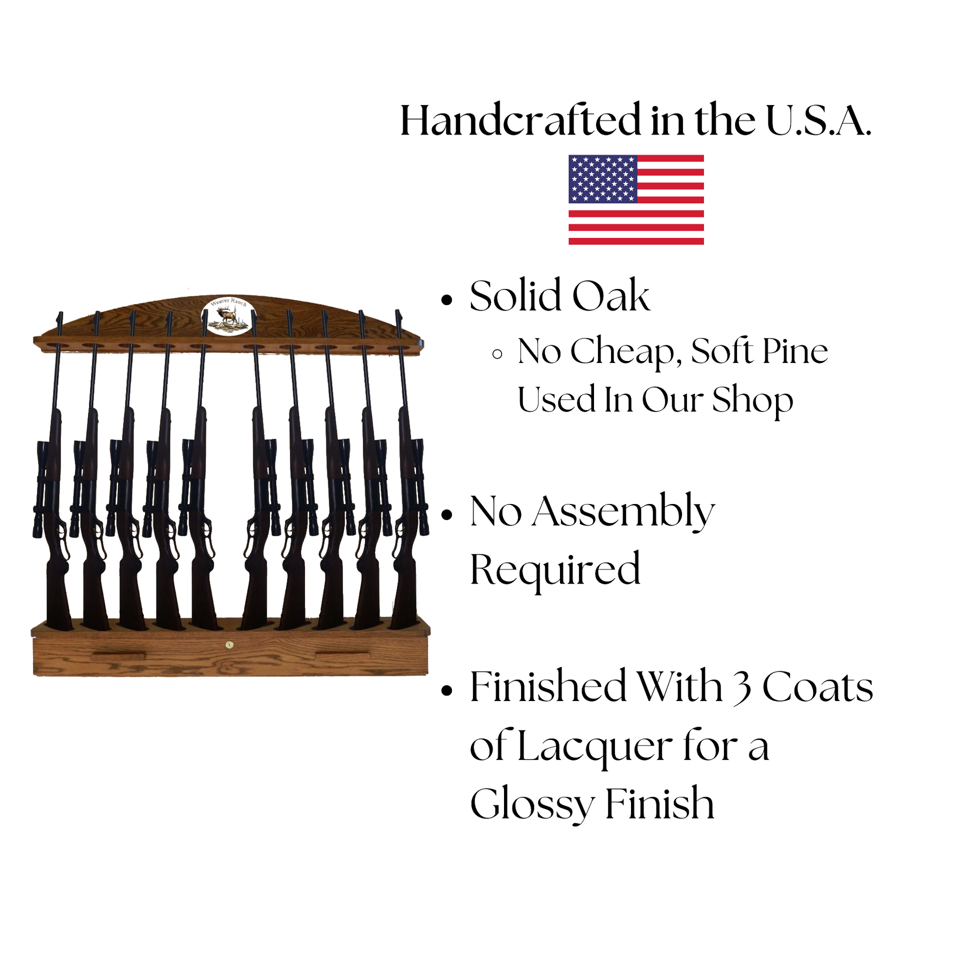 10-Gun Custom Personalized Solid Oak Wall-Mounted Gun Rack - with Locking Ammo Cabinet Display
