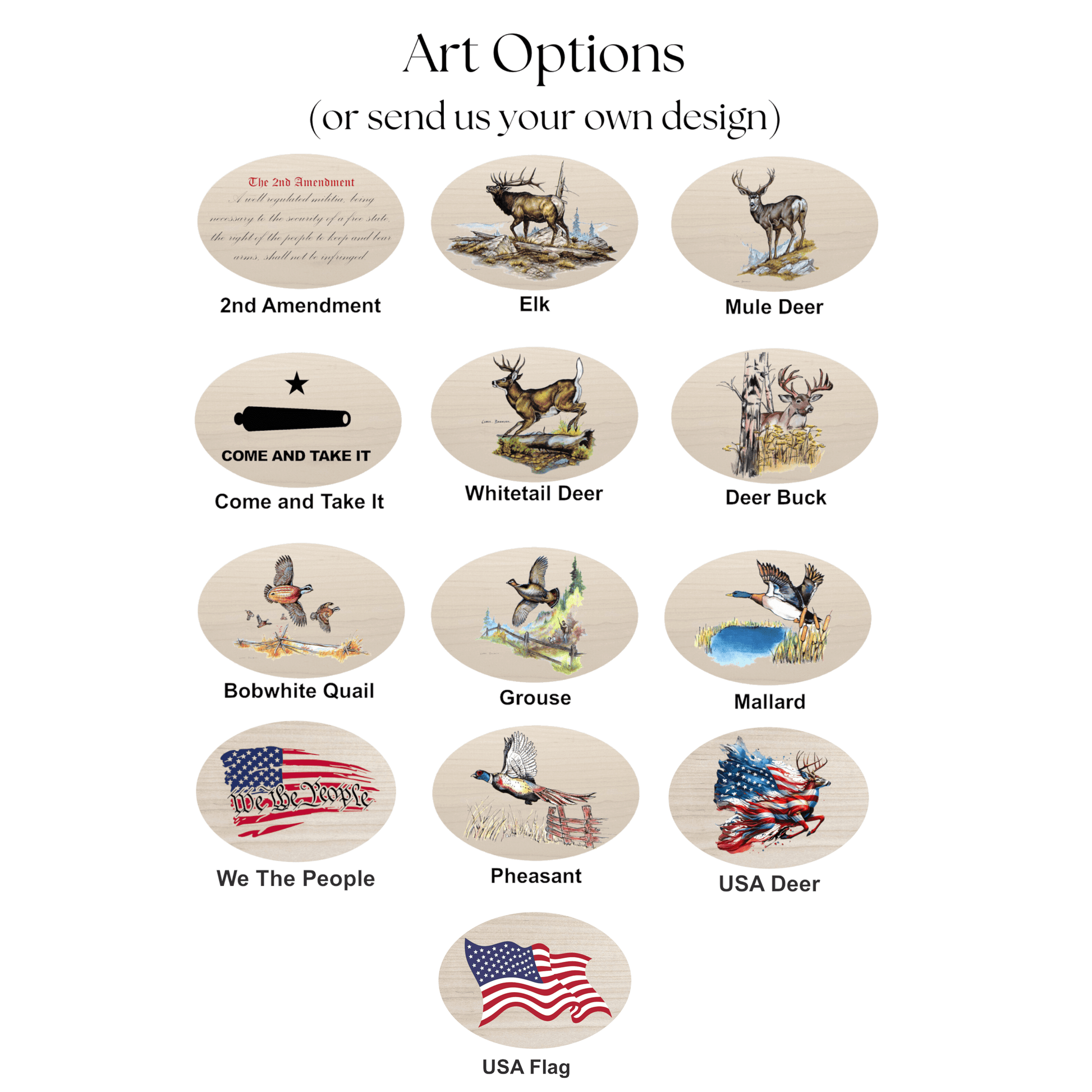 Upgrade your firearm storage with our Personalized Solid Oak Gun Rack with Locking Ammo Cabinet. Choose your size, specify your custom art and text, and click “Add to Cart” now!